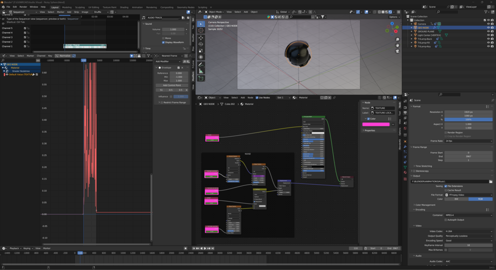 This Blender (.blend) file contains a simple Material Shader node tree that can be utilized to visualize any audio track or frequency with a 3D sphere.